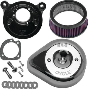Increased filter area, combined with a radiused inlet and unique S&S stinger allow smoother, faster airflow for more power. Kit includes a backplate, filter element, top cover, hardware, and instructions.
