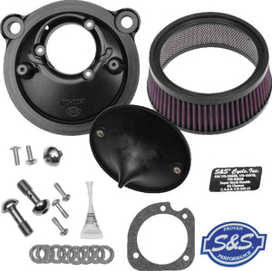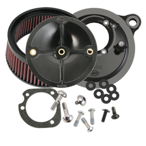 Increased filter area, combined with an air horn like radiused inlet and unique S&S stinger cone to allow smoother faster airflow for more power. Add a stylish, high-performance look with a number of good looking available covers. Kit includes a backplate, filter element, top cover, hardware, and instructions.