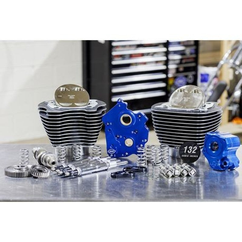 The S&S Power Package is the ideal combination of performance and savings designed to transform your engine without breaking the bank. The latest kits combine our biggest big bore cylinders (4.32 in.) with matched cam/cam plate/ oil pump and everything else a high performance cam chest needs for reliable horsepower. Transform your 107 in. to 129 in. and your 114/117 in. to a 132 in. monster.Black finish with hightlight fins, for oil cooled 2017+ M8 Models.