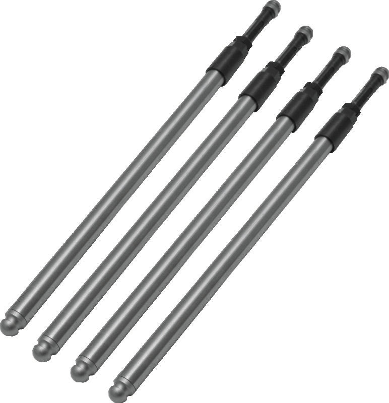 These Quickee pushrods for 1969-'84 HD® big twin engines can be both installed and removed easily. The S&S design permits a simple, trouble free installation that does not require removal of the gas tank, rocker assemblies, or even the rocker box cover! OEM pushrods may be cut to permit removal without rocker disassembly. The threaded adjuster screws into the pushrod until the threads disengage and the adjuster simply slides into the pushrod, making installation or removal a snap. Once the pushrod is installed and adjusted, the locknut prevents the adjuster from moving. Works with stock pushrod covers and Adjustable to work with all stock and aftermarket cams. Fits 74" and 103" engines with stock rocker arms.