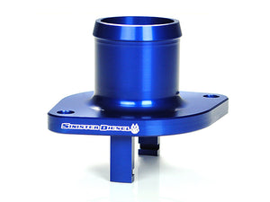 The Sinister Diesel Thermostat Housing is a drop-in replacement for the OEM housing, with several advantages. It's anodized billet aluminum construction resists corrosion that often plagues OEM units. The Precision CNC machining and thick base plate ensure a complete seal for years to come. It's finished off in our Signature Sinister Blue to add some great looks to your engine bay. NOTE: This thermostat housing is NOT compatible with Mishimoto thermostats, Features:6061 T6 Billet Aluminum Construction, Longer life with a leak-proof seal, Tough, heat-resistant design, Blue Anodized FinishIncludes:(1) Sinister Diesel Thermostat Housing, (1) O-ring seal.
