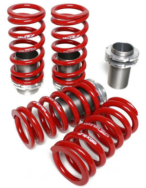Skunk2’s Adjustable Sleeve Coilovers for the ’90-01 Integra are the industry’s most affordable yet aggressive suspension system that allows street and track enthusiasts to fine tune vehicle ride height, balance, and handling performance. With nearly 15 years of spring technology and suspension tuning experience, Skunk2’s race-inspired, Adjustable Sleeve Coilover system provides a cost-effective alternative to more expensive full coilovers like our Pro-S II and Pro-C systems. Each Adjustable Sleeve Coilover kit features hard anodized, CNC-machined aluminum sleeves, forged spring perches, SAE 9254V racing springs, and mounting hardware that allows for as low as a three-inch drop (sometimes more). Designed to be used with OEM or aftermarket shocks, Skunk2’s Adjustable Sleeve Coilovers allow for independent shock replacement, which means suspension systems can be upgraded in stages. When applicable, Skunk2 Adjustable Sleeve Coilovers should be paired with Skunk2 Sport Shocks for maximum performance.