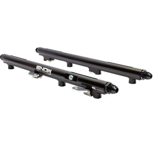 If you're looking for cheap "universal" style fuel rails with crappy mounting brackets that allow fuel leaks, this product is not for you! If you're looking for the best fuel rails on the market, you have come to the right place. Snow Performance Fuel Rails are designed and built in the USA from the highest quality components available. Snow fuel rails are CNC machined for a perfect fit and are anodized in black for the ultimate in looks and corrosion resistance. Snow fuel rails utilize high-strength stainless-steel mounting brackets to ensure the rails stay in place and do not leak in high-pressure conditions. Snow rails are ready to flow as much fuel as your engine needs, made for use with 8AN ORB fittings in the inlets/outlets of the rails there is no need to worry about fuel leaks or flow restrictions. These rails also incorporate a 1/8-NPT port in each rail for gauges, sensors, or fuel fittings to feed your nitrous system with no additional fittings required. These fuel rails fit 2005+ 5.7L and 6.1L Hemi applications with factory height injectors. Kit includes: Two Billet Fuel Rails, Two 1/8-NPT Plugs, Four 8AN Inlet/Outlet Fittings, Mounting Brackets for Factory Height Injectors, Rails are designed to work with a stock height injector. Shorter injectors can be used in conjunction with Snow Performance injector spacers (available separately).