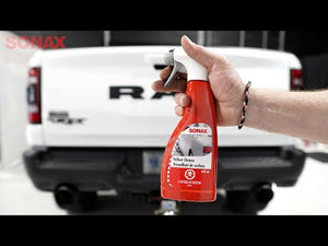 SONAX Fallout Cleaner provides specialist help for problematic car cleaning cases. The new product in the 500-ml spray bottle thoroughly and gently removes aggressive rust deposits and small rust spots from paintwork surfaces that often might lead to stubborn stains. It is suitable for removing industrial dust from paintwork and painted plastic surfaces. The SONAX Fallout Cleaner also cleans lime deposits and other dirt from paintwork.