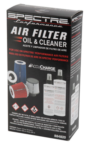 The Spectre Accucharge Precision Air Filter Cleaning and Oiling System was designed for all Spectre HPR replacement and racing air filters. Spectre's AccuCharge precision oiling system features graduation on the bottle for precise measuring and an easy-to-use squirt top bottle making the application both effortless and accurate. The system comes complete with a pump spray bottle of cleaner and one of filter oil, which is made from food grade mineral oil with absolutely no petroleum product or animal fats.