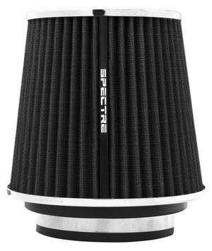 This Spectre High Performance Racing (HPR) Air Filter is a black media clamp-on cone air filter that can be used for a wide variety of applications. Using the included adapter rings, this filter can fit 3 inch, 3-1/2 inch, and 4 inch diameter tubes. Manufactured using high quality materials throughout, including oiled synthetic media, urethane, and steel mesh, this washable performance filter is precision engineered for low restriction and better performance. This filter's top houses an inverted cone filter for improved service life and enhanced flow potential. Designed with a triple chrome plated steel top and base, this 5-1/2 inch tall air filter is factory pre-oiled and ready to use.