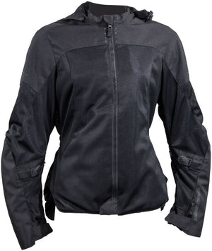 The Starstruck™ textile motorcycle jacket features a Combined Fierce™ mesh and AR-600 ripstop outer shell with removable Vault™ C.E. approved shoulder and elbow protectors, and a removable Vault™ C.E. spine protector. For added comfort, the jacket includes an elasticized ruched waist and zippered hip gussets.