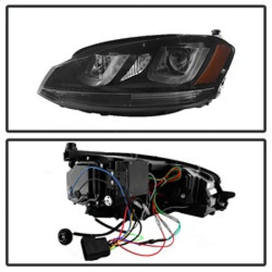 Spyder Volkswagen Golf VII 14-16 Projector Headlights DRL LED Blk Stripe Blk PRO-YD-VG15-BLK-DRL-BK - 5080578