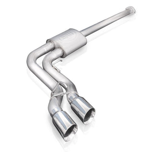 Improve sound and performance on your 2015-20 Ford F-150 5.0 with this Lightning style catback from Stainless Works. We've engineered a drone free aggressive muffler tuned specifically for this F-150. This system features a single in, dual out muffler and dual 4" polished slash cut, conical double wall tips. Fits up to Factory Connection Point. Exits out in front of passenger rear tire. This system is built from corrosion resistant 304 stainless steel and TIG welded at our state of the art facility in Streetsboro, Ohio. As always we stand by our products with a lifetime warranty on material and craftsmanship.