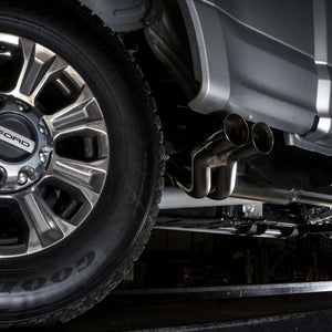 Upgrade the sound on your 2017-20 F-250/F-350 with our aggressive sound catback exhaust system. This 304 stainless steel system is a 3? true dual catback featuring an X-Pipe and dual straight through mufflers. We finished this mandrel bent system with dual 4? polished tips that exit in the stock location. Connect to our fully TIG welded header system or your stock manifolds with a simple bolt on install. Exits in front of passenger rear tire. Upgrade your exhaust today with Stainless Works!