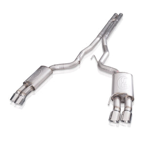 2018+ Mustang GT 5.0L, 3" Catback Dual Exhaust with H-pipe. Improve sound and performance on your Mustang GT with this Redline catback exhaust from Stainless Works. Redline series, designed to get the most aggressive sound out of your GT, we've designed these mufflers to maximize the volume and tone of that 5.0L V8 while still eliminating any drone in the cabin. All tubes are CNC mandrel bent for optimal flow. Made from 304 stainless steel for maximum corrosion resistance. This is a quad tip exhaust, exiting through our 4" slash cut conical double wall polished tips Includes hangers and clamps. This system has a performance connection that mates with Stainless Works headers. This system is designed for vehicles without Active Valve Performance Exhaust. Mill finish, All TIG welded for strength and durability. These kits come with a lifetime warranty and proudly made in the USA. This system is designed for standard vehicles without the valve. Not confirmed to fit convertibles.