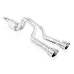 2006-09 Chevy Trailblazer SS Exhaust - 2-1/2" dual system with turbo S-tube mufflers. Stainless steel construction, TIG welded, includes Y-pipe adapter, 4" polished slash-cut tips, clamps and hangers. Exits two in center of back bumper. Fits to factory connection point. Will require removal of spare tire and trailer hitch.