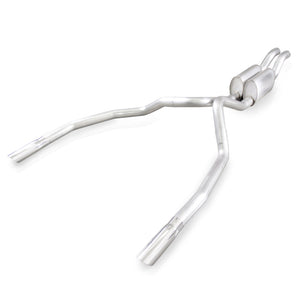 2010-14 Ford Raptor 3" True-Dual exhaust with dual S-Tube turbo mufflers, exits under bumper with 3.5" slash-cut polished tips. Performance connect to fit to Stainless Works headers. For 5.4 & 6.2L Supercab/Supercrew.