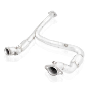 2015-20 F150 2.7L Ecoboost Downpipe. All tubes are CNC mandrel bent for optimal flow. Made from 304 stainless steel for maximum corrosion resistance. 3" downpipe with catted lead pipes. Includes Y-pipe to fit to flanged factory connection point. These are TIG welded for strength and durability. These kits come with a lifetime warranty and proudly made in the USA.
