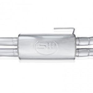 2017+ Ford Raptor 3.5L Catback Exhaust. All tubes are CNC mandrel bent for optimal flow. Made from 304 stainless steel for maximum corrosion resistance. This 3" system connects directly to the factory connection point for a simple install. Features a 5" x 9" muffler and a dual exit under the bumper in the factory location. This system delivers an aggressive tone, improved exhaust flow, and style with 5" polished tips. Mill finish, All TIG welded for strength and durability. These kits come with a lifetime warranty and proudly made in the USA.