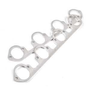 Big Block Ford flat tall oval port header exhaust flanges. These flanges come as a pair and are designed for 2-1/4" primaries, laser-cut from heavy-duty 3/8" thick 304 stainless steel for superior resistance to warping from high heat, and comes with a limited lifetime warranty.