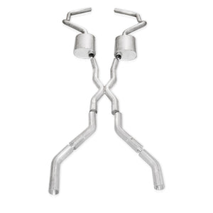 1967-69 Chevy Camaro, Made from 304 stainless steel, for maximum corrosion resistance. All tubes are CNC mandrel bent for optimal flow. This huge 3" exhaust system to fit headers. Some cutting and welding is required for installation. X-style crossover with dual chambered turbo mufflers. Exits under rear valence. Hangers not included. Hot rod system for 1967-69 Camaro. All TIG welded for strength and durability. These kits come with a lifetime warranty and proudly made in the USA.