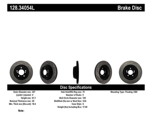 StopTech 01-07 BMW M3 (E46) / 00-04 M5 (E39) Drilled Left Rear Rotor - 128.34054L