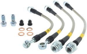 StopTech Stainless Steel Braided Brake Lines provide a quicker; firmer; more consistent pedal response by maintaining consistent brake pressure. Additionally; stainless steel lines provide precision brake modulation; especially during threshold braking. The improvement in pedal feel is more dramatic on older vehicles where the factory rubber line may have softened and swelled due to age. A variety of end fittings are available to meet application needs. All fittings are engineered for proper fit and durability. All necessary brackets and fasteners are included with each line kit.