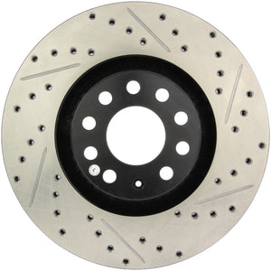 StopTech Drilled and Slotted Sport Rotors are 1-piece direct replacement brake discs for factory brake systems and stock calipers that look great behind your wheels – and offer significantly improved braking performance. The unique cross-drilling and slotting aids with heat and brake dust dispersal; prevents glazing of the pads; adds bite and improves wet and dry braking performance. Built to last; the black e-coating provides protection from corrosion and the high carbon metallurgy (in most applications) offers quieter operation; better crack resistance and increased performance. Warranty