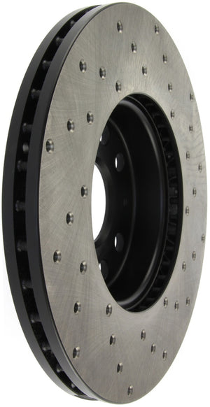 StopTech Drilled Sport Rotors are 1-piece direct replacement brake discs for factory brake systems and stock calipers that look great behind your wheels – and offer significantly improved braking performance. The unique cross-drilling aids with heat and brake dust dispersal, prevents glazing of the pads, adds bite and improves wet and dry braking performance. Built to last, the black e-coating provides protection from corrosion and the high carbon metallurgy (in most applications) offers quieter operation, better crack resistance and increased performance. Warranty Technical Bulletin