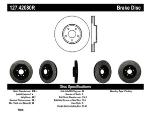 StopTech Drilled and Slotted Sport Rotors are 1-piece direct replacement brake discs for factory brake systems and stock calipers that look great behind your wheels – and offer significantly improved braking performance. The unique cross-drilling and slotting aids with heat and brake dust dispersal, prevents glazing of the pads, adds bite and improves wet and dry braking performance. Built to last, the black e-coating provides protection from corrosion and the high carbon metallurgy (in most applications) offers quieter operation, better crack resistance and increased performance.