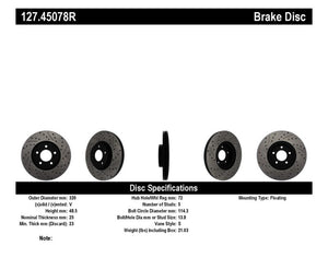 StopTech 07-09 Mazda 3 Right Front Slotted & Drilled Rotors - 127.45078R