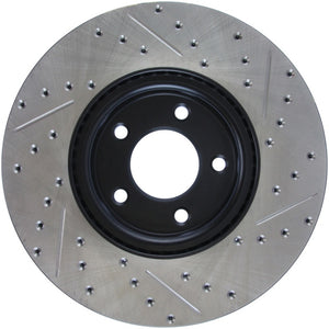 StopTech Drilled and Slotted Sport Rotors are 1-piece direct replacement brake discs for factory brake systems and stock calipers that look great behind your wheels – and offer significantly improved braking performance. The unique cross-drilling and slotting aids with heat and brake dust dispersal; prevents glazing of the pads; adds bite and improves wet and dry braking performance. Built to last; the black e-coating provides protection from corrosion and the high carbon metallurgy (in most applications) offers quieter operation; better crack resistance and increased performance. Warranty