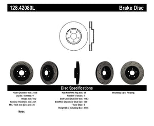 StopTech 08-09 Infiniti EX35 / 05-08 G35 / 09 G37 / 06-09 M35/M45 Drilled Left Front Rotor - 128.42080L