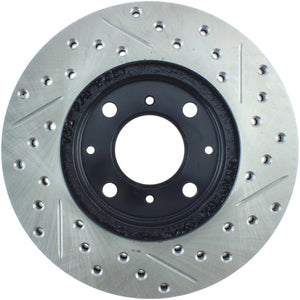 StopTech 96-00 Honda Civic DX/HX Coupe/90-00 Civic DX/LX Sedan Slotted & Drilled Right Front Rotor - 127.40023R