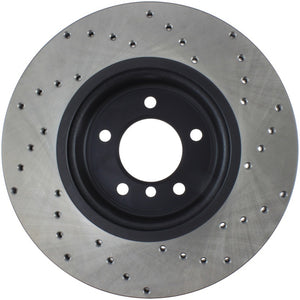 StopTech Drilled Sport Rotors are 1-piece direct replacement brake discs for factory brake systems and stock calipers that look great behind your wheels – and offer significantly improved braking performance. The unique cross-drilling aids with heat and brake dust dispersal; prevents glazing of the pads; adds bite and improves wet and dry braking performance. Built to last; the black e-coating provides protection from corrosion and the high carbon metallurgy (in most applications) offers quieter operation; better crack resistance and increased performance. Warranty