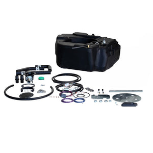 TITAN's Spare Tire Auxiliary Fuel System (STAFS) puts an additional 30 gallons of fuel at your fingertips. In most cases this doubles the fuel capacity of American-made diesel pickup trucks made after 1999. This innovative system is designed to repurpose the space commonly used to stow a vehicle's spare tire.30 Gallon innovative Spare Tire Auxiliary Fuel System.For 2500 & 3500 DODGE Pickup Models with Cummins Engines.For model years 2003-2012. •LIFETIME WarrantyIts underbody location means that it has no impact on the truck bed's hauling space. In many cases where aftermarket custom wheels and tires are installed on a vehicle, they are not the same size as standard which means the original equipment spare cannot be used anyway.The STAFS military grade cross-linked polyethylene tank body is light at only 30-pounds, making it easy for one person to handle and includes mounting hardware, a filler kit, and an electronic fuel transfer monitor and control unit which is operated from the comfort of the cab. The electronic system gives the vehicle operator total flexibility in managing how the extra fuel capacity is used.The fuel can be held in reserve or transferred on-the-go as the need arises. The controller's illuminated user interface indicates the tank's fuel level and features a single-touch button that starts the fuel transfer sequence. With one touch, fuel begins transferring from the STAFS tank to the vehicle's primary fuel tank and continues to flow until it is automatically stopped by the controller or the button is touched again.The new TITAN system comes with a universal filler kit featuring an attractive brushed aluminum door that can be installed on the vehicle's exterior sidewall or on an inside wall of the truck bed. All of the mounting brackets, hoses, valves and pump are included with each system.Note: TITAN's STAFS must only be installed on vehicles equipped with heavy Class V (5) hitches, standard on most full-sized diesel pickups
