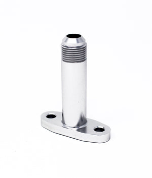 Torque Solution Extended Port Matched Oil Drain Flange is designed to give you extra clearance from the turbo housings making for an easier install on T3/T4 PTE, Borg Warner, Turbonetics, Comp, etc turbos. Made from CNC 6061 billet aluminum and integrated with a -10AN flare fitting. The bottom of the flange is also port matched with a tapered bore to promote the oil flow and to prevent oil pooling in the turbo. We have also incorporated a recess with an o-ring gasket for a leak proof seal.