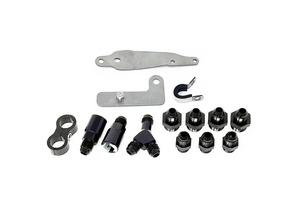 Torque Solution PTFE Fuel Line Kit for -6 Aeromotive Fuel Pressure Regulator is a perfect choice when you are looking for a quick and easy plug and play fuel line kit to go along with any -8 ORB compatible fuel rails. The kit comes with pre-assembled PTFE hose with crimped ends, all the necessary fittings, bracket to mount your FPR to the shock tower, and installs utilizing the OEM hard lines. Our kit is perfect for anyone looking to make up to 600-650whp (proper fuel pump setup required). This kit is designed to setup your fuel system in parallel to ensure each cylinder receives optimal fueling. All our fittings come black anodized and are compatible with all fuel types such as E85. Works with the Torque Solution Top Feed Fuel Rails or any other fuel rail that accepts -8an ORB fittings.