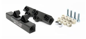 Torque Solution Top Feed Fuel Rails are a must have for high horsepower applications and a perfect complement to your high flow fuel injectors. Our rails are made from 6061 Billet Aluminum with a 5/8" ID for maximum fuel flow and threaded for -8 O-Ring boss fittings (not included). Perfect for setting up your fuel system in parallel to ensure each cylinder receives optimal fueling. All our rails come anodized with our logo engraved into the billet to look as good as they perform. Zinc install hardware is included to prevent rusting. Includes short and tall press fit phenolic spacers to ensure a perfect fit no matter which injector and TGV type you are running.