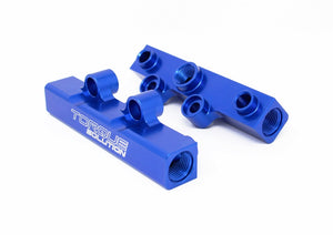 Torque Solution Top Feed Fuel Rails are a must have for high horsepower applications and a perfect complement to your high flow fuel injectors. Our rails are made from 6061 Billet Aluminum with a 5/8" ID for maximum fuel flow and threaded for -8 O-Ring boss fittings (not included). Perfect for setting up your fuel system in parallel to ensure each cylinder receives optimal fueling. All our rails come anodized with our logo engraved into the billet to look as good as they perform. Zinc install hardware is included to prevent rusting. Includes short and tall press fit phenolic spacers to ensure a perfect fit no matter which injector and TGV type you are running.