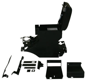 This 16 gauge steel rear half console provides 75 percent more secure storage than the plastic factory console. A special bracket is included for mounting a stereo, CB or other electronic equipment inside the lockable console. Inside the storage area there is a handy removable utility tray. Tuffy’s 1/4 inch thick patented Pry-Guard II latching system secures the lid shut while a gas strut supports the lid when open. The 2011 plus JK Rear Half Console is used in conjunction with the front half of the factory console. It includes rear drink holders, but does not replace the original factory front cup holders. The console is taller than the OEM model and features a more comfortable full length padded armrest. The console is designed to work in vehicles equipped with and without the rear power window switches. Installation Instructions