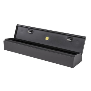 Looking to upgrade the under seat storage in your Jeep Gladiator? Look no further than the Tuffy high security, welded steel, under rear seat lock box. Easily mount it under the rear seat in your Jeep Gladiator using four included bolts and create over 2000 cubic inches of secure, concealed storage. The full width single lid design of the Tuffy lock box is easily accessed by flipping up the rear seats to access the secure lid. Use the full width to stow your gear, firearms or other long and valuable items. Featuring Tuffy’s Pry-Guard Locking System with two 10 tumbler double bitted security locks that include built in weather seals. The entire lock box conceals neatly under the lowered rear bench seat. Secure some peace of mind and the best secure storage and organization on the market for your Jeep Gladiator. Installation Instructions