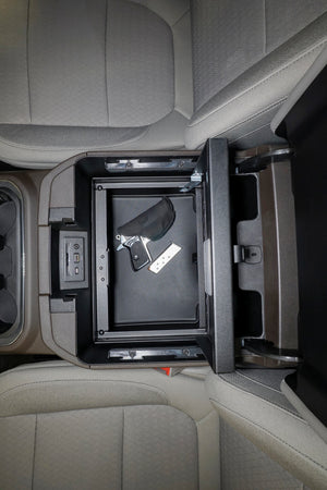 Chevy/GMC owners secure some peace of mind by installing the fully integrated and concealed Tuffy Security Console safe. As part of our ever-expanding line of console safe safes for trucks, the Tuffy Console safe accommodates the OEM USB, SD and AUX ports providing style, security and convenience. The Tuffy Console safe transforms your OEM console into a heavy-duty lockable storage safe using Tuffy’s Pry-Guard locking system with 10 tumbler double bitted security key to help protect valuables from opportunistic thieves. The innovative design uses an exclusive lid support feature that keeps the lid open while sticking your hands inside. Grab something quick on the go without fear of the lid slamming shut on your hand. The safe maintains a completely stock look. Finished with a durable texture powder coat, the Console Safe comes ready to install and lasts a lifetime.