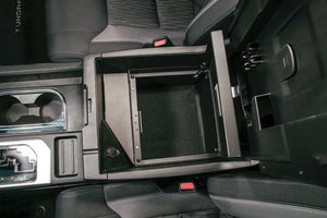 Continuing the Tuffy legacy of designing and manufacturing the finest console safes in the industry since 1997, Tuffy is proud to introduce our new security console safe for the 2014 plus Toyota Tundra. This 16 gauge steel console safe provides style, security and convenience. While maintaining the refined curves of the OEM console, the Tuffy console safe transforms your OEM console into a heavy-duty lockable storage area utilizing Tuffy’s Pry-Guard locking system with 10 tumbler double bitted security key to help protect valuables from thieves. The Tuffy console safe provides access to optional OEM 12v power outlets from the console. The innovative design utilizes an exclusive lid support feature that keeps the lid open while accessing contents. The safe maintains a completely stock look including full use of armrest and lid. Featuring a durable texture powder coat finish, the safe comes ready to install in just a few minutes without drilling.
