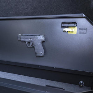 Mount your knives, or other metal objects in any orientation for convenient quick-and-easy access in your Tuffy console safe, drawer, enclosure, or lockbox with the Tuffy Magnet. Four rubber encased magnets hold 45 pounds and most handguns and revolvers, while 2 Tuffy Magnets or more can be used for larger items like shotguns and rifles, allowing you to store your favorite home defense piece in an accessible location for quick deployment. Molded, non-marring rubber coatings protect your items from scratches, blemishes, and more. Can be mounted on drywall, hardwood, or softwood to ensure you have protection handy when you need it most. Includes 4 wood screws, 4 drywall anchors and 1 Tuffy Gun Magnet.