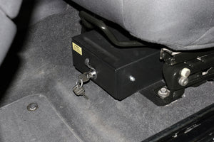 This high security welded steel security drawer mounts under the drivers side seat in a Jeep TJ & LJ (With Flip Seat). The formfitting design of the Tuffy lockbox has over 128 cubic inches of lockable storage. It’s secured contents are easily accessed by maneuvering the drawer open and closed on the smooth ball bearing slides using the convenient pull lever. Featuring Tuffy’s Pry-Guard Locking System with a 10 tumbler double bitted security lock with built in weather seals. The design incorporates a heavy duty fully extending slide system, weather seal & welded construction. A formed rib in the enclosure additionally strengthens the locking system. Tuffy’s exclusive bolt-blocker bracket is included for additional security. Mounts inconspicuously under the drivers side seat in a Jeep TJ & LJ (With Flip Seat) out of apparent sight of would be thieves. Uses the factory hardware without drilling. The drawer must remain locked while operating the vehicle. Installation Instructions