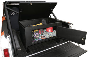 This heavy duty, high security, 16-gauge steel trunk mounts in place of the rear seat. The lockable trunk is great for tools, camping gear, equipment, and much more. The trunk can be accessed through the large top lid, or through the independently opened rear door. A unique hinge design allows the Lockbox to be flush mounted without affecting hinge operation. Installation Instructions