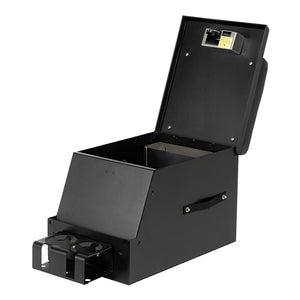 This high security 16 gauge steel console features Tuffy’s patented pushbutton latch system. For safety and convenience while operating the vehicle, the lid also latches closed without having to be locked. It has a spacious compartment for mounting a CD changer, storing tools, electronic equipment, cellular phones, and other valuables. Rubber floor mat is included; other accessories are available. Installation Instructions