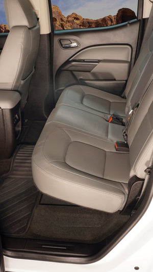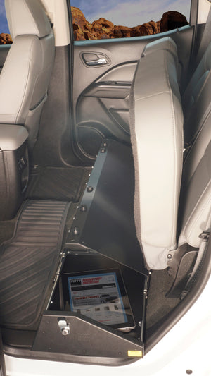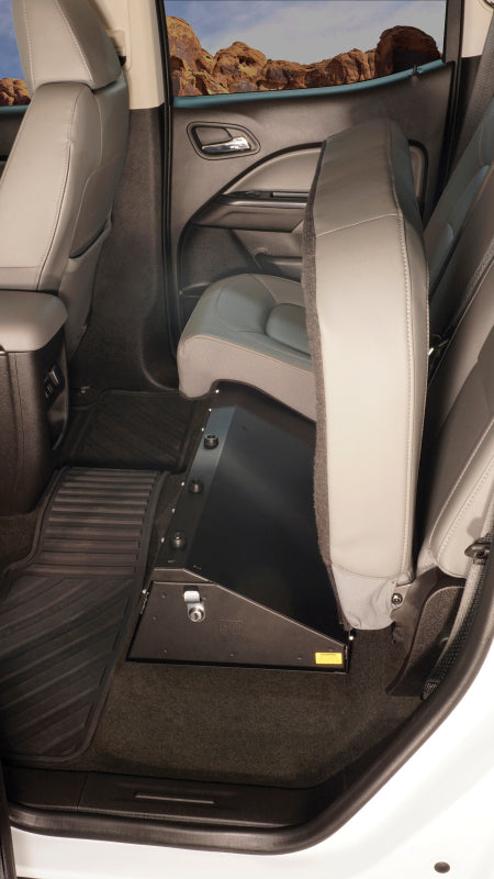 This high security welded steel security drawer mounts under the rear split bench seat in your 2014-2022 Chevrolet Colorado or GMC Canyon. The formfitting design of each Tuffy Security Drawer has over 600 cubic inches of lockable storage. Its secured contents are easily accessed by maneuvering the drawer open and closed on the smooth ball bearing slides using the convenient pull lever. Drawers are accessible from both the passenger and driver side rear doors. Each drawer in the enclosure features Tuffy's Pry-Guard Locking System with a 10 tumbler double bitted security lock with built in weather seals. The design incorporates a heavy duty fully extending slide system, weather seal and welded construction. This dual drawer system mounts inconspicuously out sight of would-be thieves and replaces the OEM plastic cubby under the Crew Cab configured bench seat. The enclosure uses the factory mounting locations and hardware for an easy no drill install.