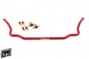 UMI’s 1-¼" (32mm) solid front sway bar is the go-to bar for today’s modern handling muscle car. This bar reduces body roll and helps plant the front tires without ruining ride quality and comfort. Each bar is manufactured from CNC bent 4140 CrMo which features excellent strength and a lifetime of durability. The standard kit includes polyurethane bushings and clamps along with quality polyurethane bushing endlinks. Also available is our billet aluminum bracket kit (P/N 0047) for those who want ultimate strength combined with a great appearance. This kit is available in UMI red or gloss black powder coat. 100% manufactured, tested and raced in the USA.