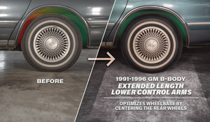UMI Performance 91-96 Impala SS Adjustable Extended Length Lower Control Arms- Rod Ends - 3614-R