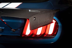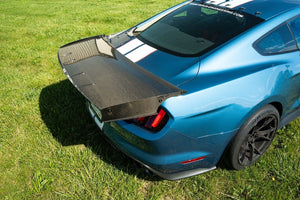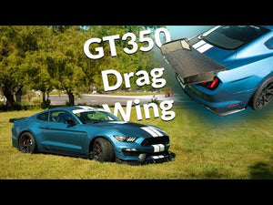 The Drag Wing for the S550 GT350 is built to remove drag from the vehicle, making the car more slippery when going down the dragstrip or airfield. This reduction in drag comes from reducing the pressure drag on the back side of the Mustang. By reducing the pressure bubble, the car benefits from a reduction of drag. The wing is designed to work on the factory trunk and handle the downforce well, the rear spoiler or drag wing bolts on easily and improves performance this sports car can utilize on the drag strip or during half mile or mile events.