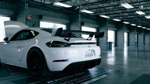 The UCW Rear Wing is a great addition to your Porsche 981/718 to increase downforce significantly in the rear, increase confidence on track, and reduce lap times. Designed to work on the factory or aftermarket uprights and handle the downforce well, the rear wing bolts on easily and improves performance this sports car can utilize on and off track.