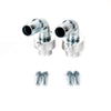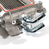 This kit includes a set of high flow 1" fittings that bolt onto the outside of the lower intake. They have an 80 degree angle to connect to 1" ID rubber hose. We recommend Gates heater hose.